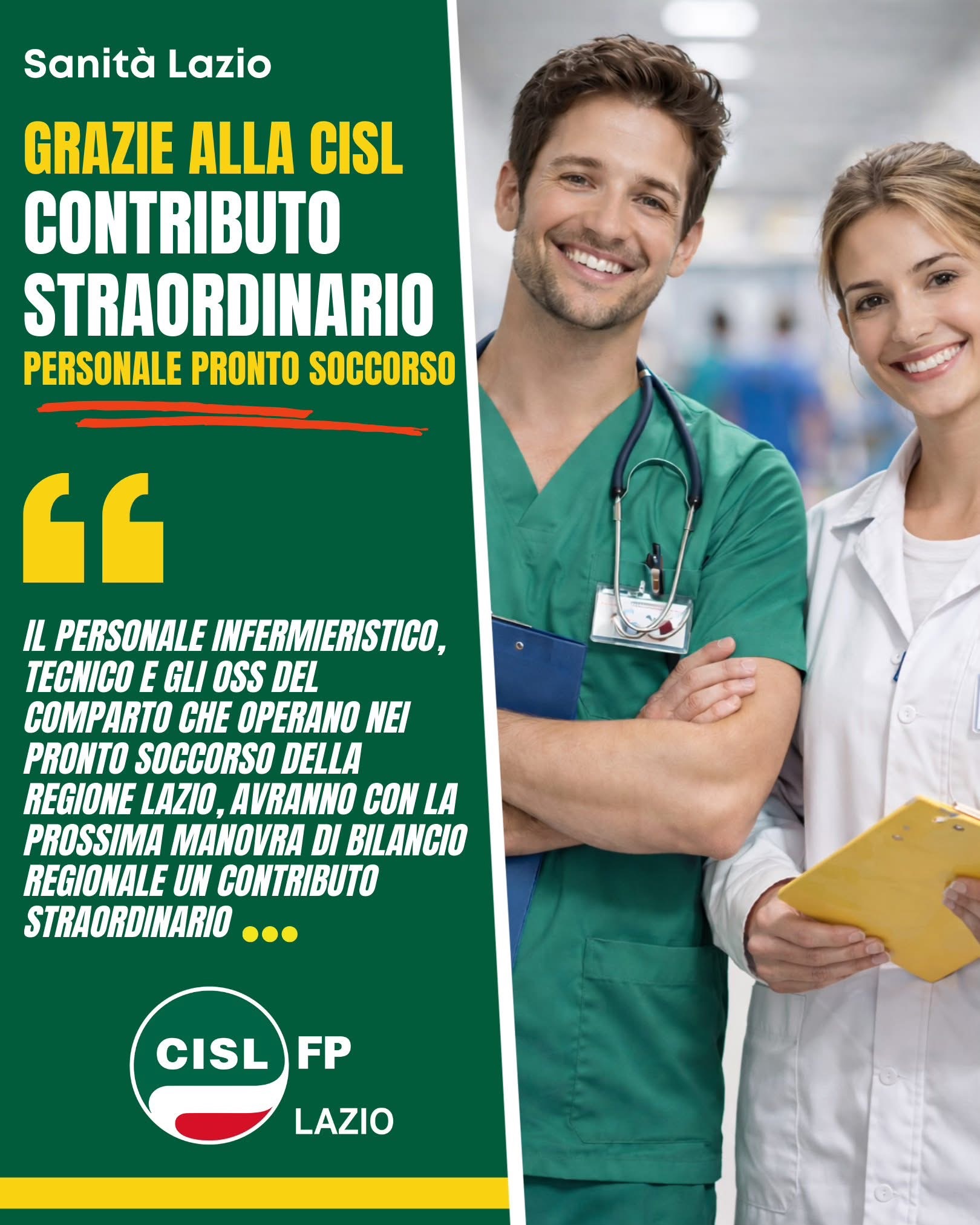 Grazie alla Cisl contributo straordinario per il personale di Pronto Soccorso